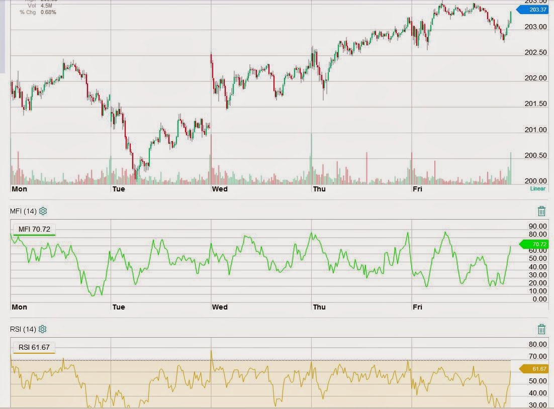 Všimněte si indikátorů MFI a RSI  – opět putují k maximům …