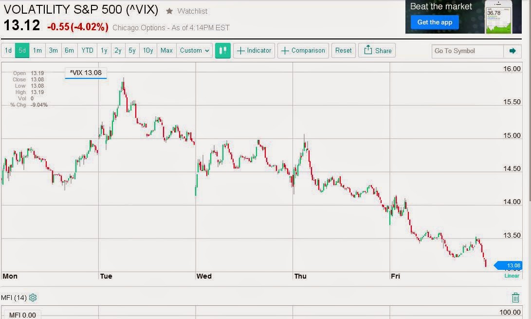 VIX se nám dostal od maxim opět k minimům (zdroj: finance.yahoo.com)
