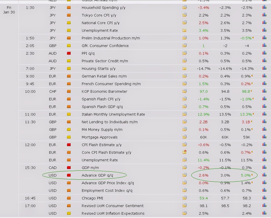 | páteční makra, US ekonomika zklamala (zdroj: forexfactory.com) |
