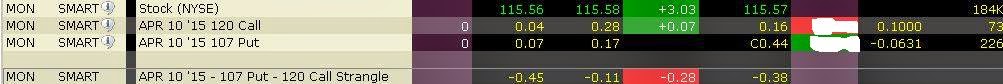 Nechce se mi čekat do příštího týdne, takže zavírám moje pozice za zisk od 10 do 14 dolarů na jeden strangle.