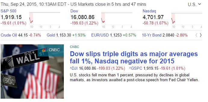 | Propad trhů na open, trhy čekají na JY (zdroj: finance.yahoo.com) |