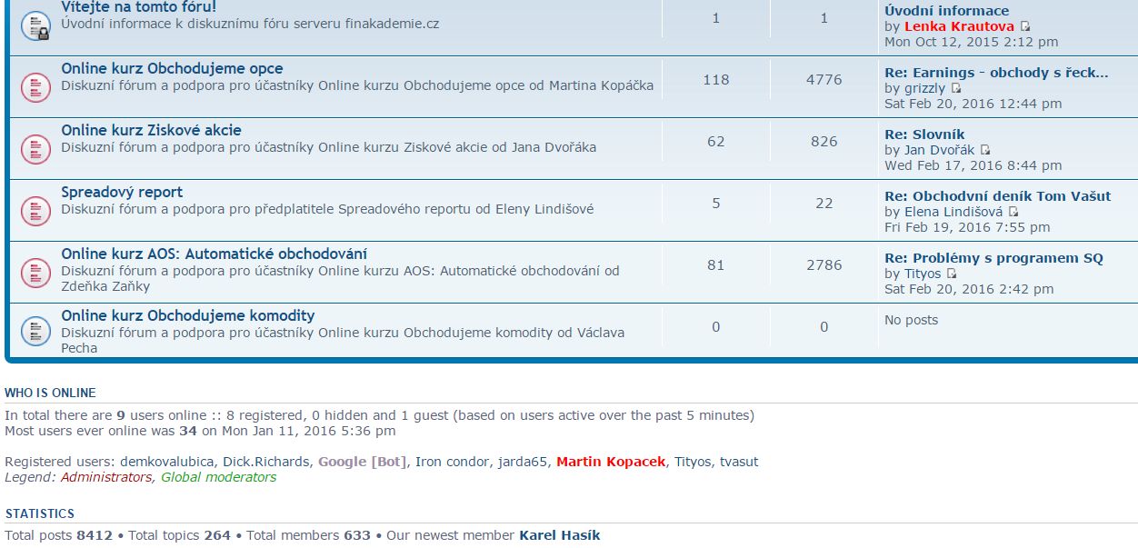 Absolventi opčního kurzu mají navíc přístup i k debatě ke Grizzlyho příspěvkům. Někteří kolegové zkoušejí už Grizzlyho postupy obchodovat a v diskuzním fóru řeší konkrétní situace.
