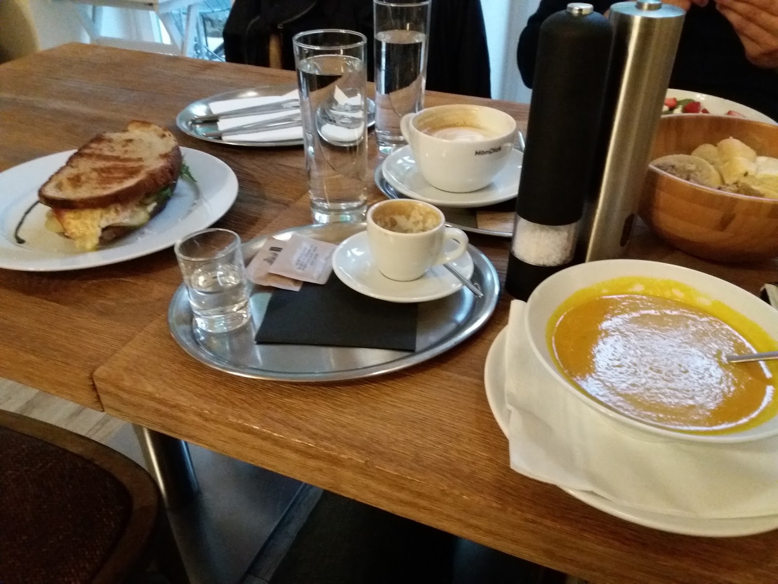 Jo, a mrkvová polévka se zázvorem (vpravo) byla překvapivě dobrá 🙂