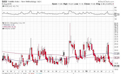 | VIX na minimech, čili optimismus na trhu (zdroj: stockcharts.com) |