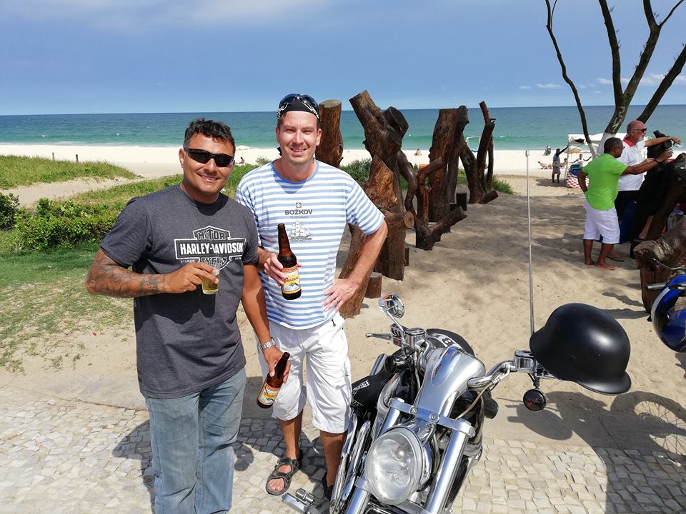 Štrádujeme si to tady v Riu u pláže, a hele, HDčko 🙂 Jdu zkusit pokecat s majitelem motorky, i když tenhle klub rozhodně neznám. Touha pokecat s brazilským motorkářem je velká.