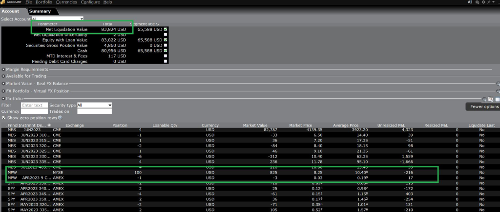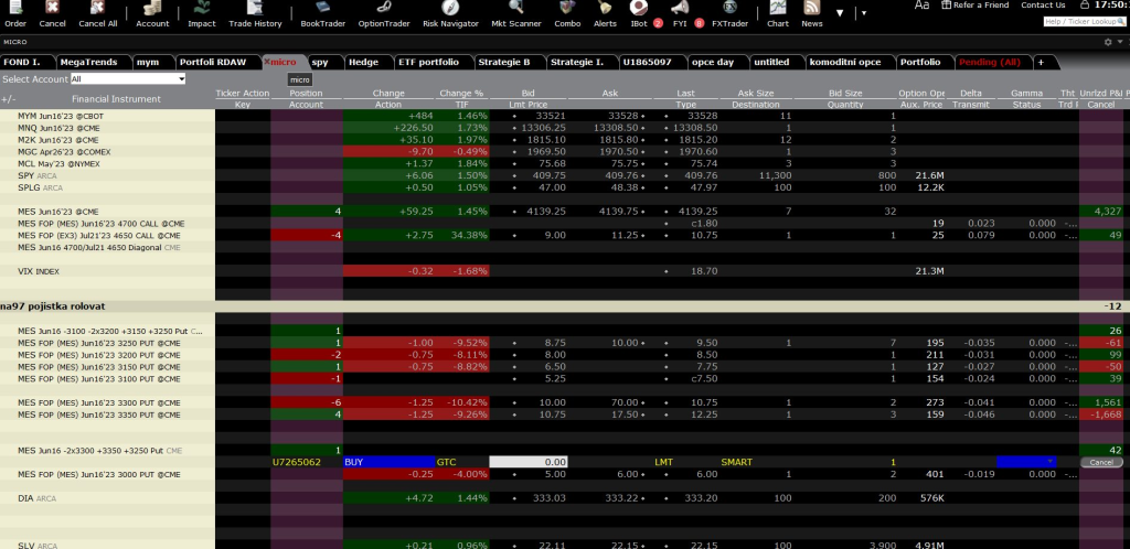 3) Pohled do IB na malý účet. Aktuální otevřený zisk mne nezajímá, živí mne výpisy opcí a ždímání prémií. Takže bych byl rád za to, co jsem popsal v bodu 1) abychom mohli přidat další pozice: